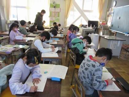 書写で、お手本を見てしっかりと書きました。