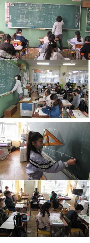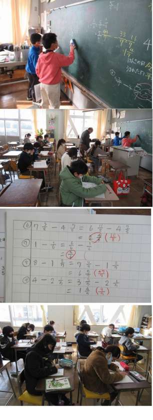 算数で、分数の引き算のやり方を考え発表しました。