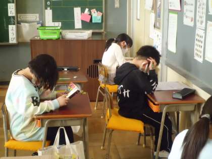 テスト中です。終わった子は読書をしています。