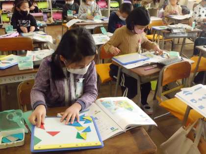 算数で、色板で模様をつくりました。