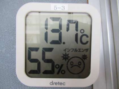 週末の暖かさが残っていて、3階の気温・湿度は、13.7度・55%と暖かでした。