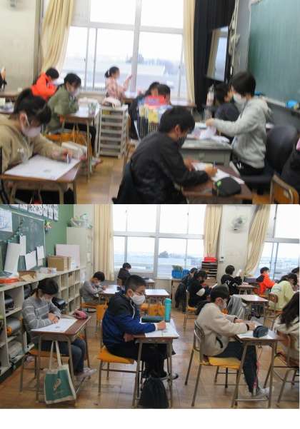 音楽で、「この道」を鑑賞し感想をプリントに書き込みました。