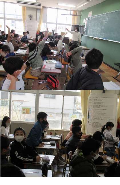 算数で、伴って変わる3つの数の関係について、図や表を使って考えました。