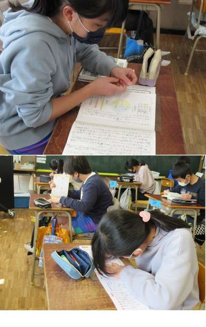 テストやプリントが終わり、ドリルやレポートづくりに取り組みました。