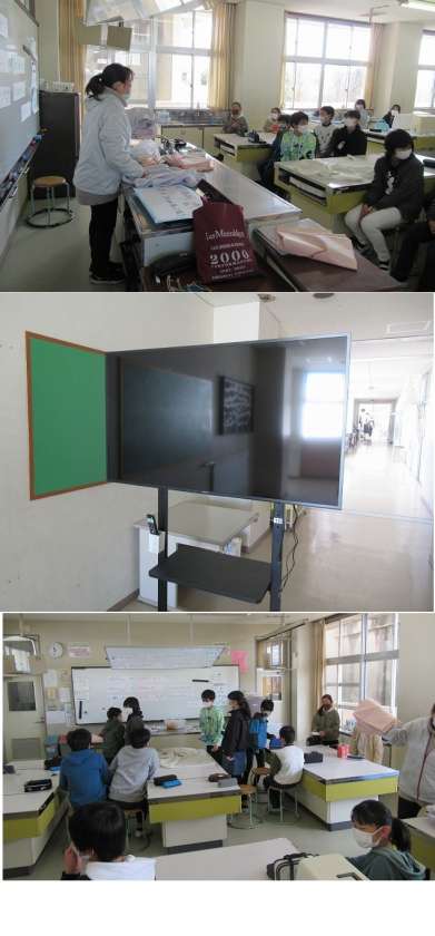 家庭科で、導入された大型ディスプレーのカバーづくりに取り組み始めました。