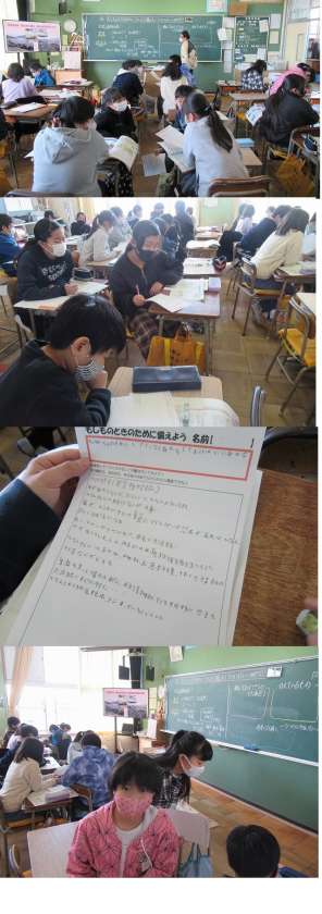読解で、「もしもの時にどんな備えをしておけばいいのか」を考え、友達と交流しました。