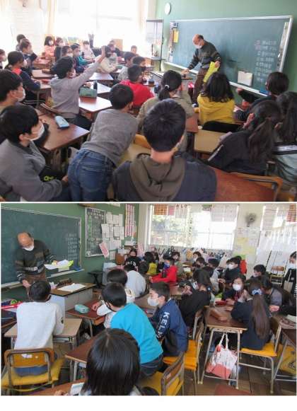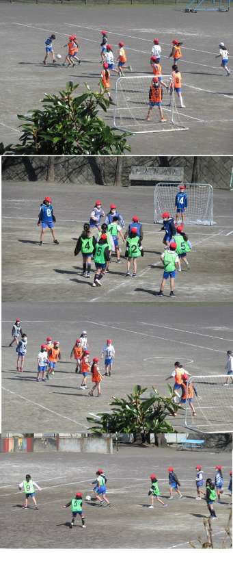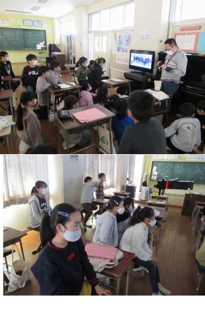 音楽で、体育館で撮った合唱のビデオを視聴し、改善点を確認しました。