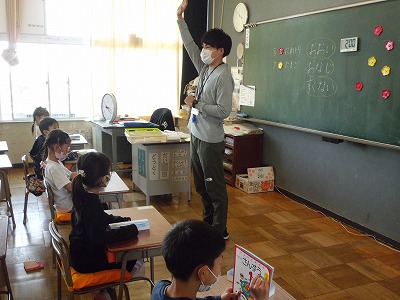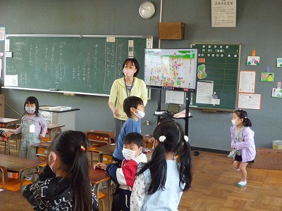 上:道徳 「がっこうだいすき」で、仲間づくりをしていました。