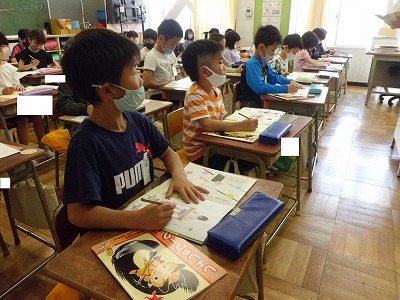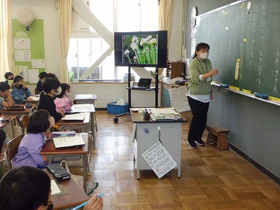 下:国語 「ねぎぼうずのがくたい」の読み取りをしています。