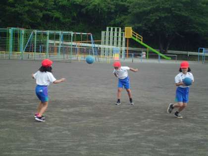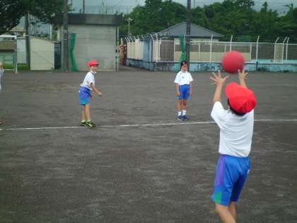 上、中:体育で、ボール投げをしました。