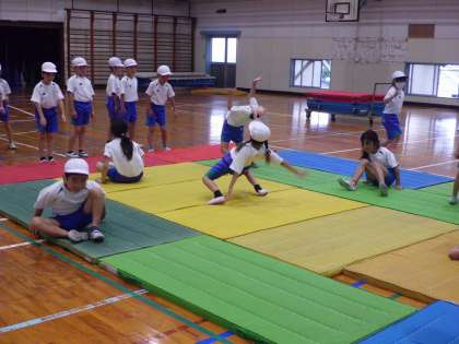 下:体育館でマット運動をしました。