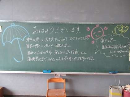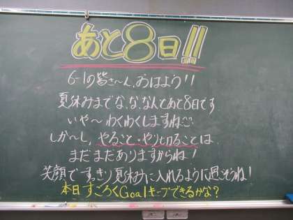 6年教室の黒板には子供たちへのメッセージが書かれていました。