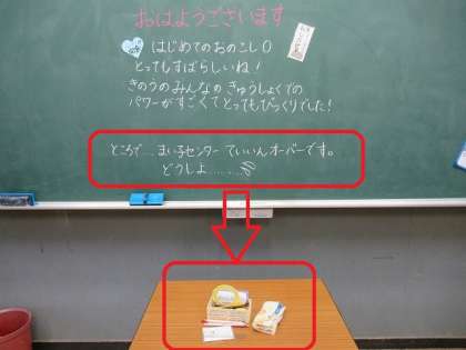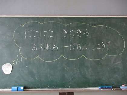 黒板には子供たちへのメッセージが書かれていました。