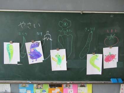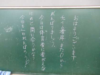 黒板には子供たちへのメッセージが書かれていたり、図工の作品が掲示されていたりしました。