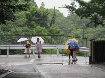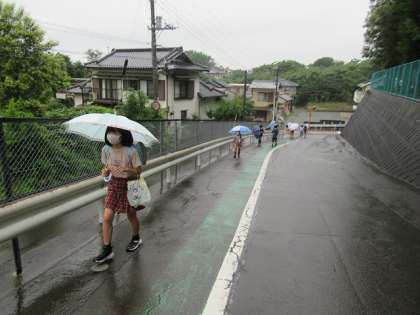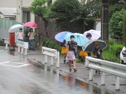 子供たちが傘を差して登校してきました。