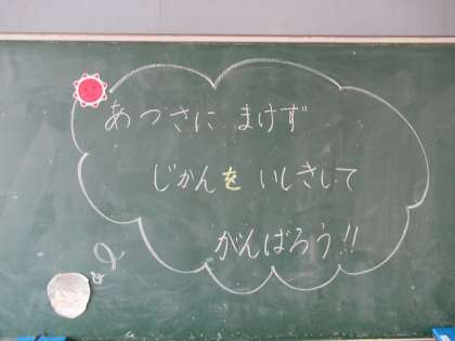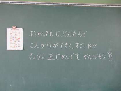 1年教室の黒板には子供たちへのメッセージが書かれていました。