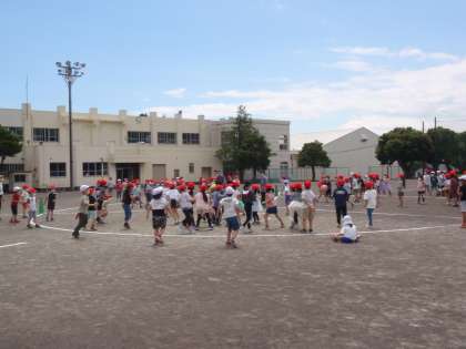 昼休みに学年集会を行いました。2年生は円形のコートを作って、ドッジボールを学級対抗で行いました。気温が高くなかったので、運動にはちょうどよい時間、楽しく過ごしていました。