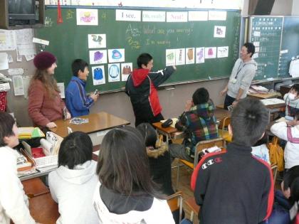 英語の時間では、「What are you wearing?」と洋服についての勉強をしました。ゲームを通して楽しみながら表現に慣れ親しみました。