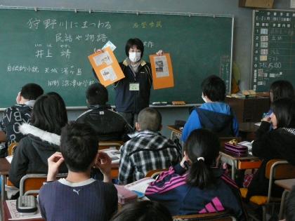5年生の「読解」の授業では、『言語科 副読本』を使って、「狩野川にまつわる民話や物語」ということで井上靖の作品についても学習していました。