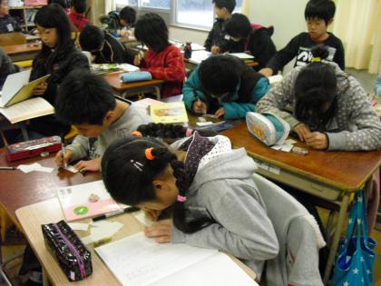 国語「漢字をおくろう」の学習です。クラスの友達一人ひとりに漢字一文字で表現します。「○○さんにはこの漢字!」など、習った漢字を振り返りながら取り組んでいます。みんなからどんな漢字が届くのか楽しみにしています。