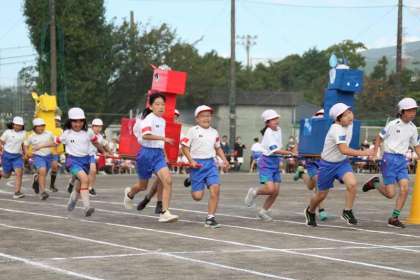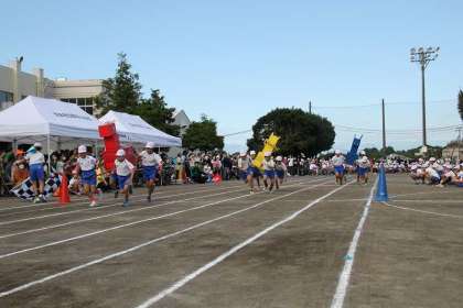 4年生の団体競技「ウマキッズ 愛鷹ダービー」の様子です。