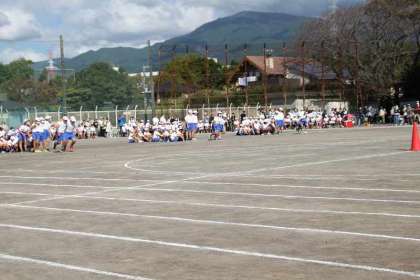 5年生の団体競技「みんなで『最強』だから!〜愛鷹事変〜」の様子です。