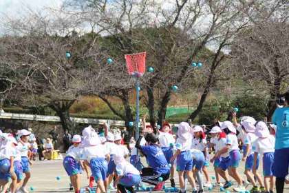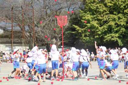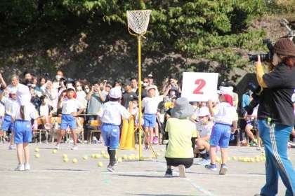 1年生の団体競技「投げてるよ!愛鷹アイドル」の様子です。