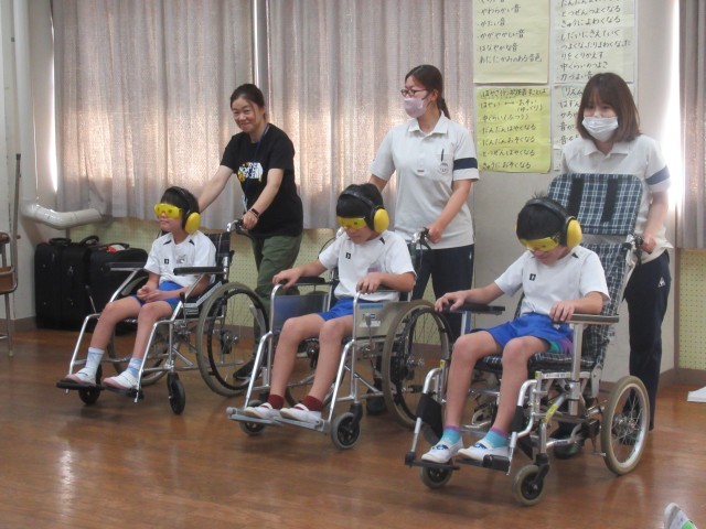 今日の福祉体験は、耳が見えず、目も聞こえにくい時に、何も教えられずに車椅子が動く時と、教えてもらいながら車椅子が動く時の違いを、実際に体で感じる体験でした。言葉がけは、相手に安心感を与えることがよく分かりました。