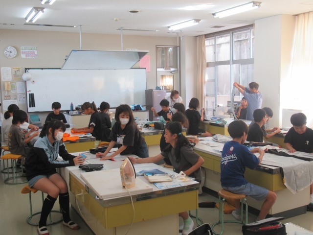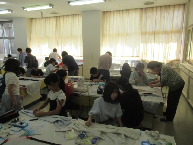 今日もミシンの授業の支援に、たくさんの地域ボランティアの方々が来校くださいました。連日の方もいらっしゃいます。本当にありがとうございました。