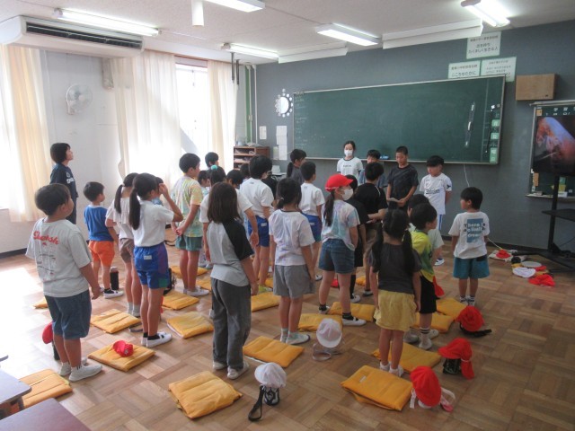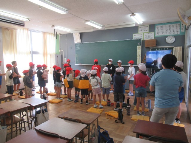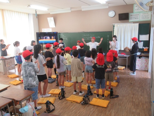 1年生から6年生が一緒になって、たくさんのグループに分かれて活動する「鷹の子縦割り活動」が昼休みに行われました。上級生が下級生をお迎えに行ってスタートです。今回は、運動会の応援合戦の練習です。手拍子や応援歌の練習を頑張っていました。6年生が素晴らしいリーダーシップを発揮していました。