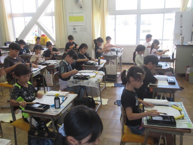 理科と書写の授業の様子です。どちらも静かに落ち着いた雰囲気の中で取り組んでいました。