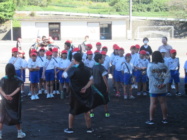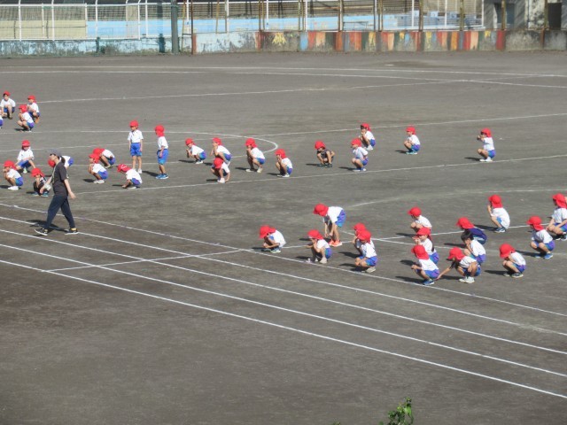今日も元気に、運動会の練習をしています。休み時間も有効に活用していました。