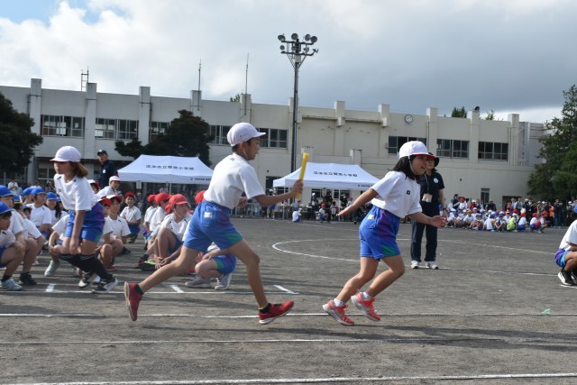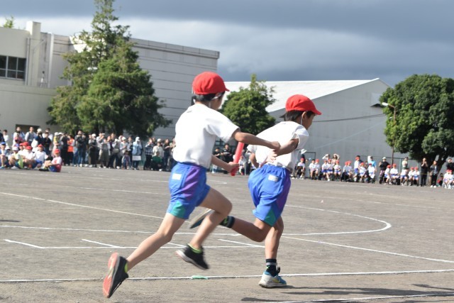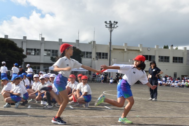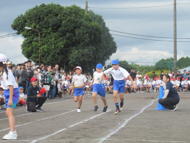 4年生のリレーで、幕を開けました。全力疾走する姿はかっこよかったです。