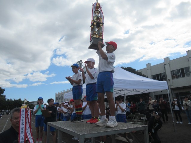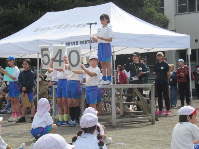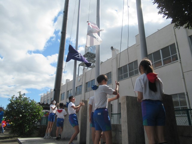 閉会式です。成績発表では、優勝が紅組、準優勝がなんと同点で、白組、青組という大接戦でした。150周年にふさわしい熱戦が繰り広げられたことをうれしく思います。