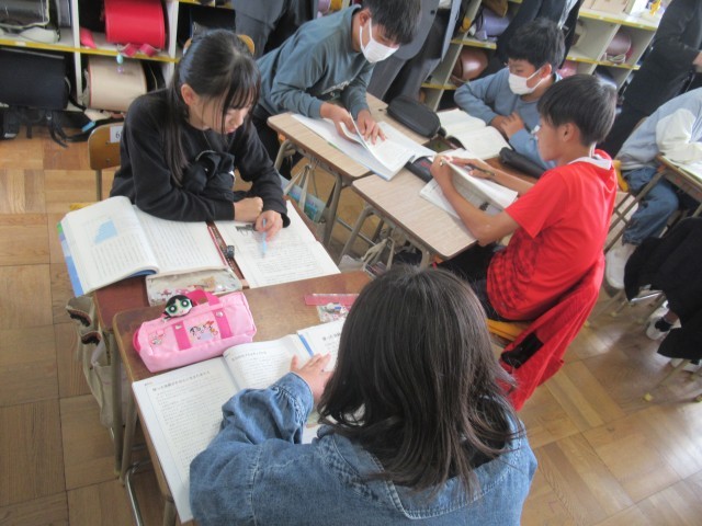 友だちに伝え合いながら、要点を読み取る活動をしていました。