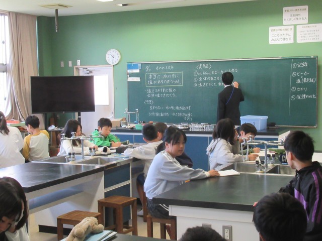 「ものの溶け方」の学習でした。溶けたものの行方について予想を立てていました。