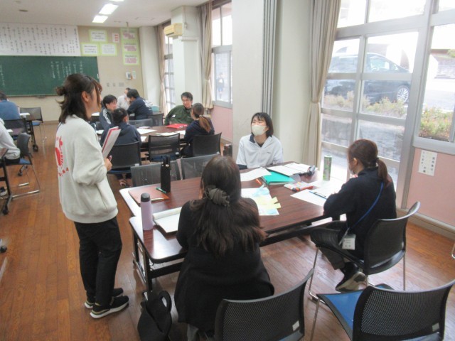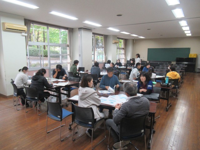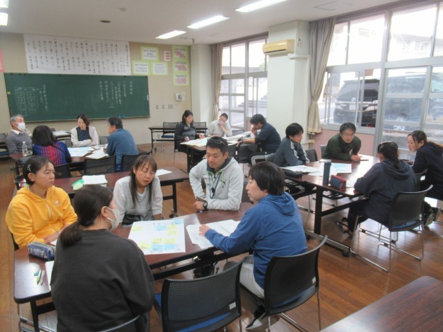 1年生の授業を参観した後、全職員で研修会を開きました。今後の授業に生かしていくために、子供たちの表れをもとに、授業内容を振り返り、成果や課題を出し合いました。
