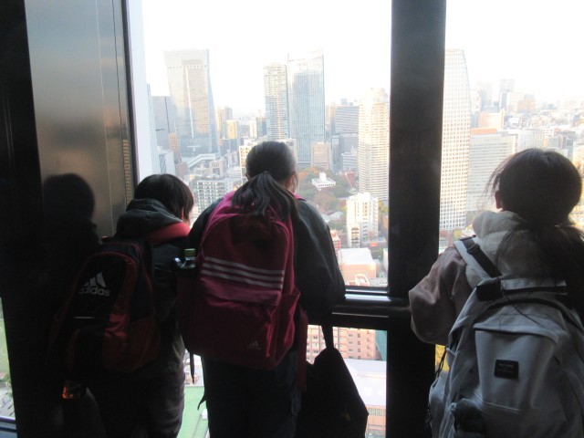 東京タワーに到着しました。展望台まで長〜いエレベーターに乗り、絶景とご対面です。