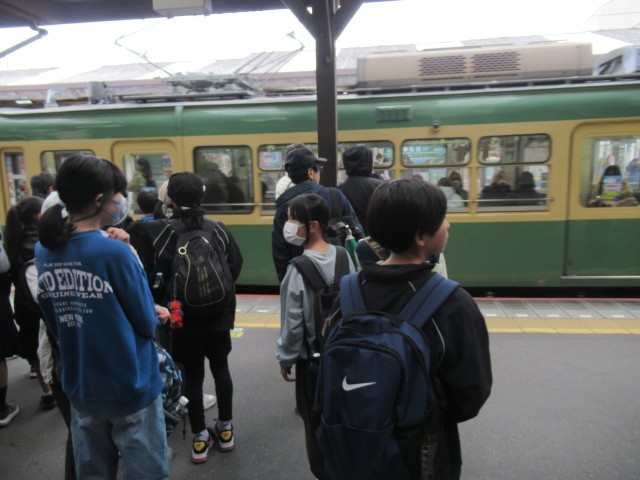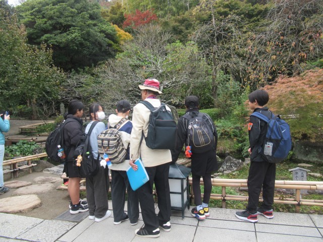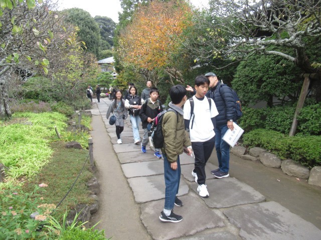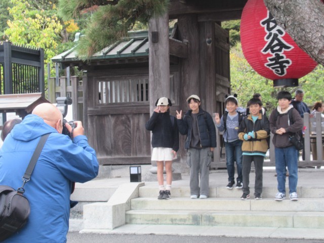 高徳院見学の後は、各班ガイドさんと一緒に、自分たちで考えたコースを回りました。こちらは長谷寺、報国寺コースです。