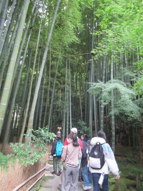 報国寺の美しい枯山水の庭園を見学し、幻想的な竹林の中を歩きました。