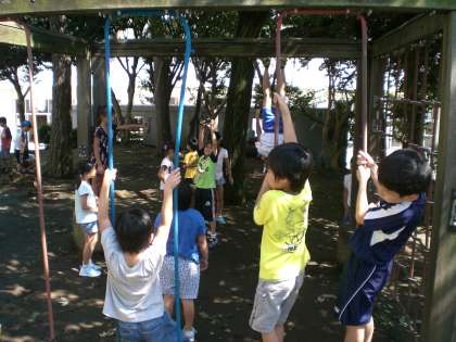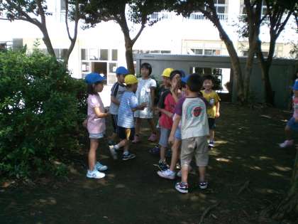 久しぶりの青空のもと、昼休みの「鷹の子森」では、子どもたちの元気な声が森いっぱいに響いていました。