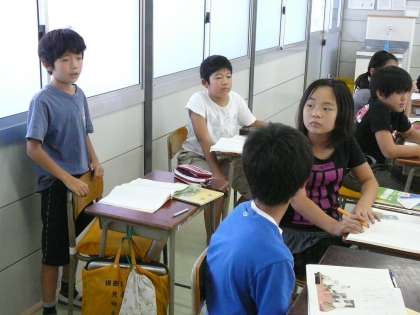 国語の「注文の多い料理店」です。「注文の言葉に着目して読もう」を課題としてみんなで読みました。看板の中には、注文ではなく、「『歓迎です』などのただの表示だ」としっかり言葉に気をつけて読んでいました。