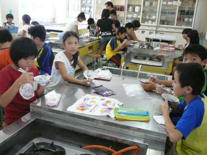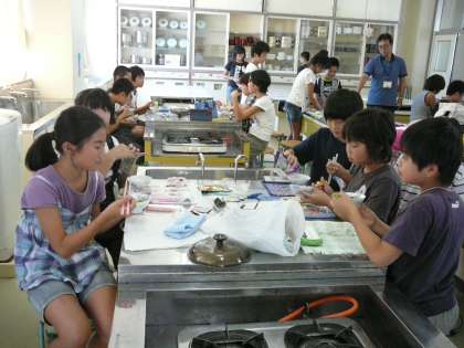 自然教室でのはん合すい飯の練習として、おなべを使ってご飯をたきました。どのグループもおいしいご飯がたけて、子どもたちも笑顔があふれていました。