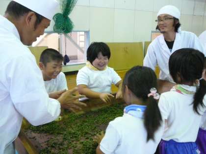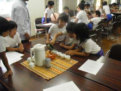 手もみ茶、お茶のいれ方、DVD鑑賞の3つのグループに分かれて順番に勉強しました。