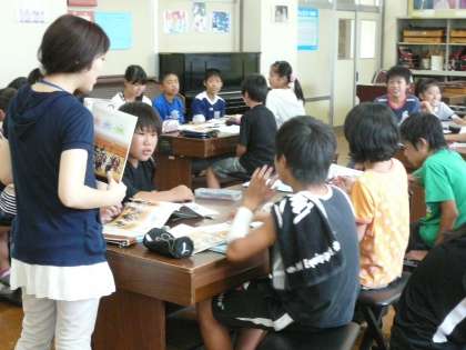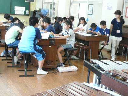 鑑賞の時間です。耳をすませて、重なり合う音のひびきを聴いています。