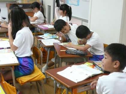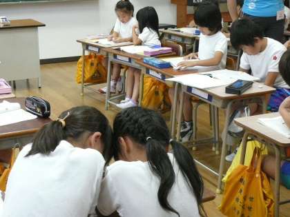 グラフをもっと分かりやすくするにはどうしたらよいかを、となり同士のペアでよく考えています。ペア学習をがんばっています。