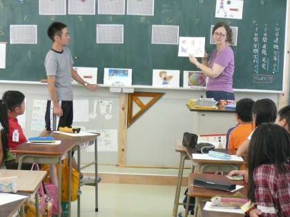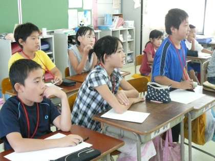 花火や虫取りなど夏休みの様子を表す言葉を、ゲームをしながら確かめました。花火の英語の言い方を初めて聞き、驚いていました。