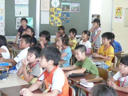 英語の時間です。ゲームを通して、体のパーツの英語を覚えています。楽しく活動できました。