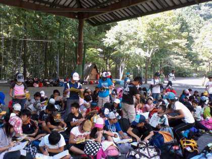 無事、入所式を終え、ウォークラリーを始めます。スタート順をビンゴで決めています。