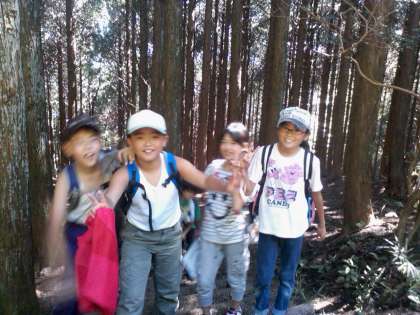 お昼ご飯を食べる公園を出発し、再び自然の家を目指して歩いています。